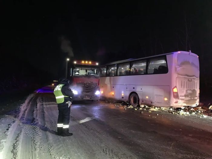 В момент аварии в салоне автобуса Yutong, следовавшего по маршруту «Талица — Екатеринбург», находилось 24 пассажира, никто из них не пострадал.