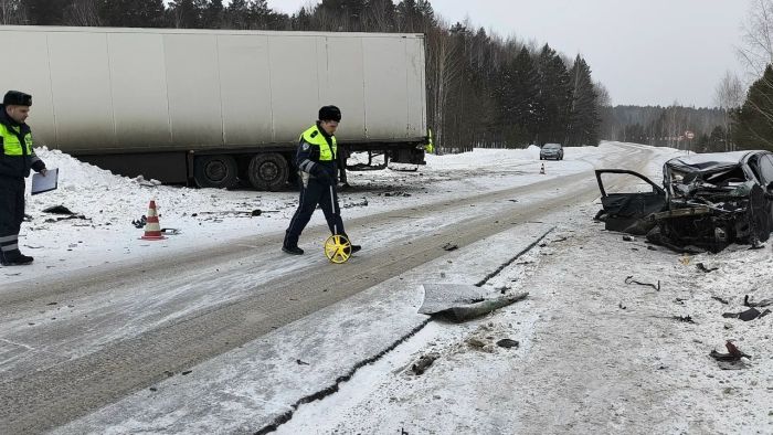 По предварительным данным, 69-летний житель Байкаловского района, двигаясь за рулем Renault Logan со стороны Ирбита, выбрал скорость, не соответствующую дорожным и метеорологическим условиям, не справился с управлением и допустил выезд на встречную полосу, где в это время ехала фура Volvo.