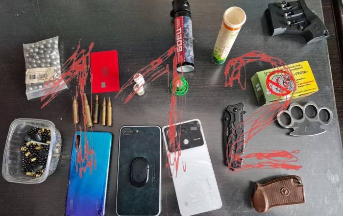 Во время обысков в их квартирах нашли кастеты, ножи, пистолеты и пиротехнические патроны.