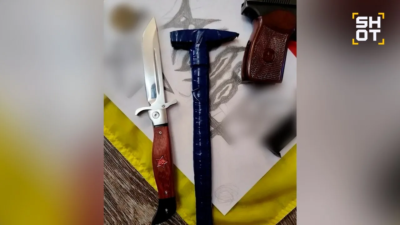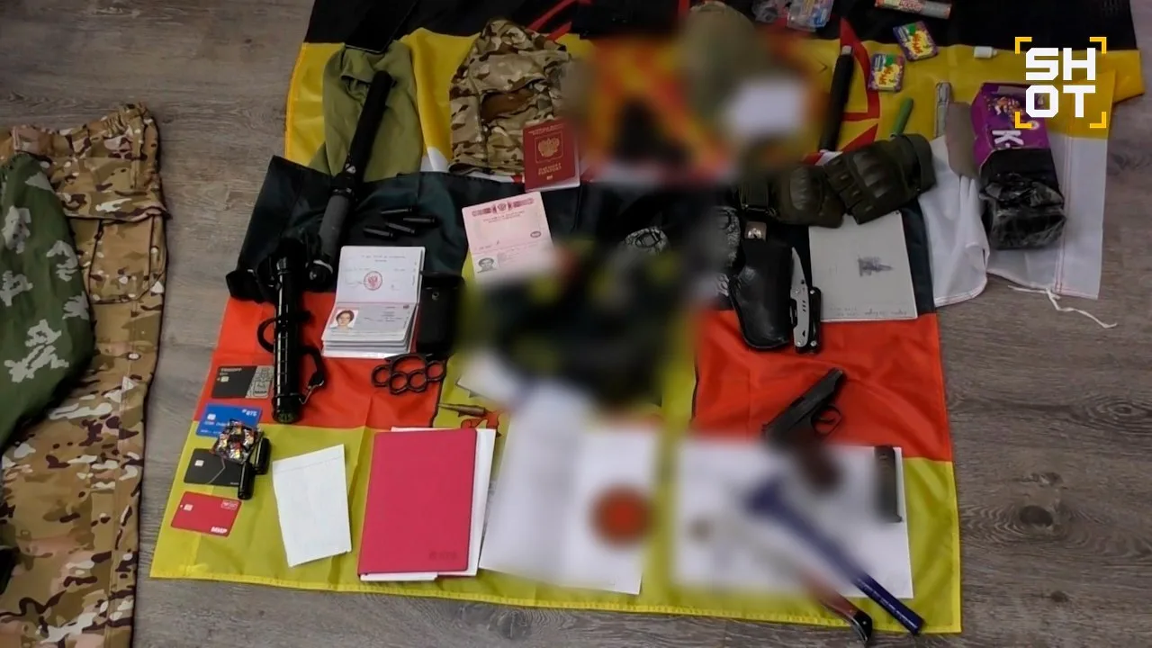 Во время обысков у задержанных изъяли взрывное устройство массой один килограмм, гранату Ф-1, два газовых и один пистолет с глушителем, рации, неонацистскую атрибутику и символику украинских военизированных формирований.