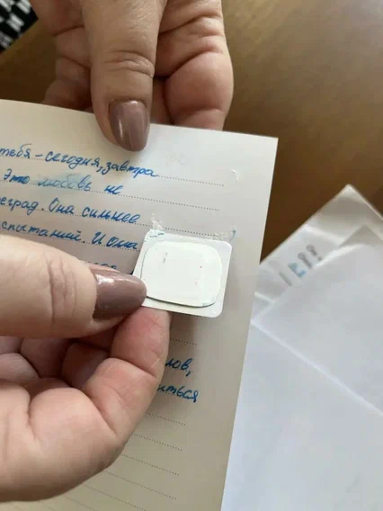 В конверте находились 13 sim-карт операторов сотовой связи и 1 флеш-карта, спрятанные ухищренным способом (на задней стороне стикеров, приклеенных к открытке).