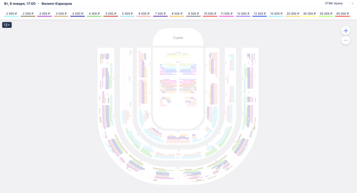 Билеты на концерт Киркорова стоят от 2000 до 40 000 рублей. Их пока в продаже много.