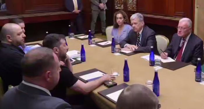 Ранее в феврале на встречу с президентом США Дональдом Трампом Зеленский явился в черной фуфайке, в которой он обычно записывает свои ежевечерние послания украинцам. Трамп с иронией отметил, что Владимир «принарядился», а журналисты из пула Белого дома поинтересовались, есть ли у него нормальный костюм.