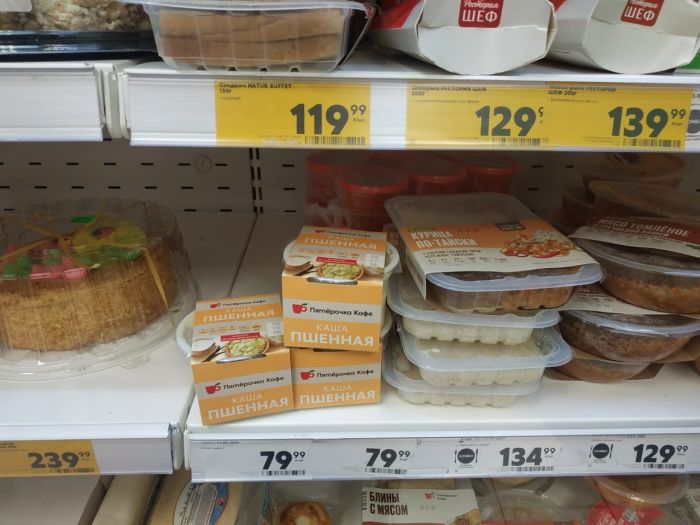 «Ещё один блок поправок в закон „О торговле“ регулирует продажу „готовой еды“. Сегодня приготовление выпечки, салатов, десертов может происходить прямо в магазине. Говоря по-простому, прямо „не отходя от кассы“. Торговые сети могут закупать продукцию кулинарии и у сторонних поставщиков, но обычно фасуется вся эта „готовая еда“ прямо в магазине перед выкладкой на прилавок, что абсолютно недопустимо», — считает Миронов.