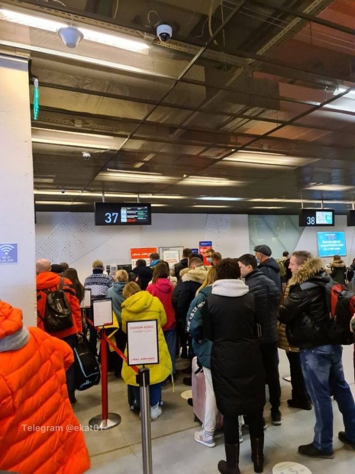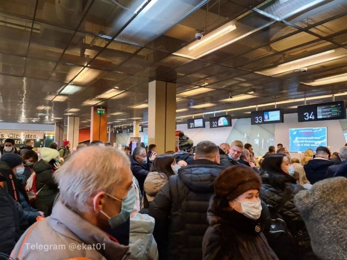 — Толпа людей образовалось из-за массового сбоя регистрации. Людей успокаивают сотрудники аэропорта и уверяют, что «все улетят», — сообщили екатеринбуржцы.