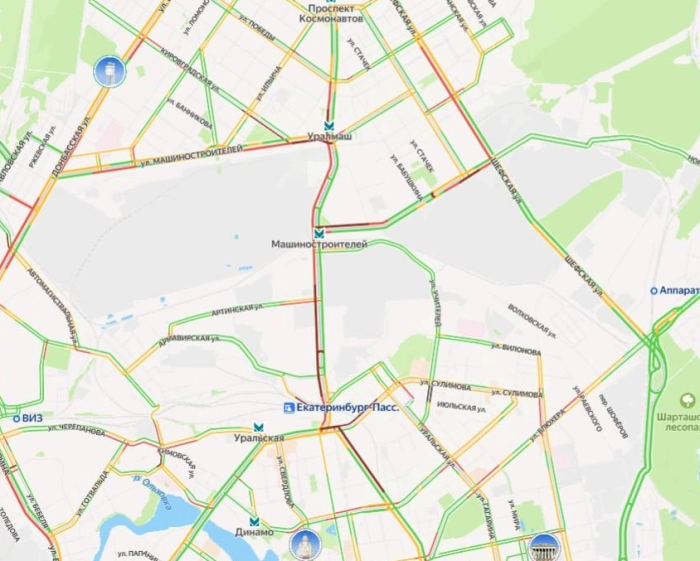 Движение оказалось затруднено и на прилегающих перекрёстках с Машиностроителей, Фронтовых бригад, Сулимова и Восточной. Автомобилисты рассказали порталу E1.RU, что на Челюскинцев — Космонавтов сломался светофор, это и стало причиной пробки. На перекрёстке начал работать регулировщик.