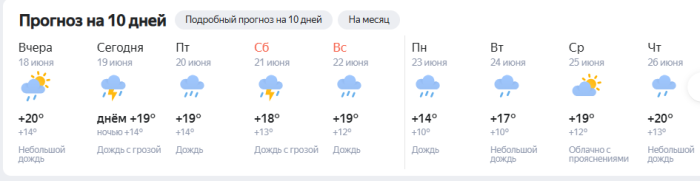 Выходные погода будет тоже не очень. Каждый день будет идти дождь, а температура ожидается ниже 20 градусов.