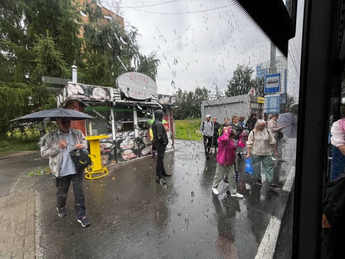 Увы, в связи с этим обострилась проблема с отсутствием остановок в городе. Напомним, что некоторые из них выломали ещё весной, правда вот теперь местные жители прячутся от дождя под деревьями.