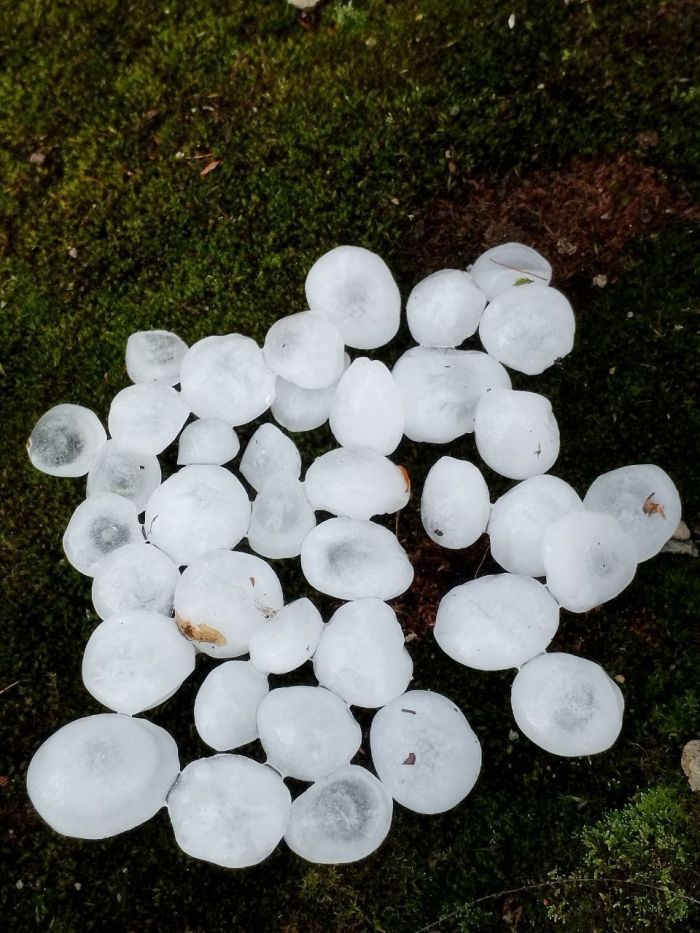 На нескольких кадрах также опубликовали град, размером схожий с перепелиным яйцом. Льдинки изрешетили крышу одной из теплиц, пишет Ura.Ru.