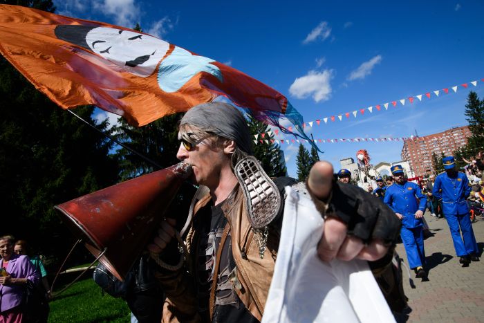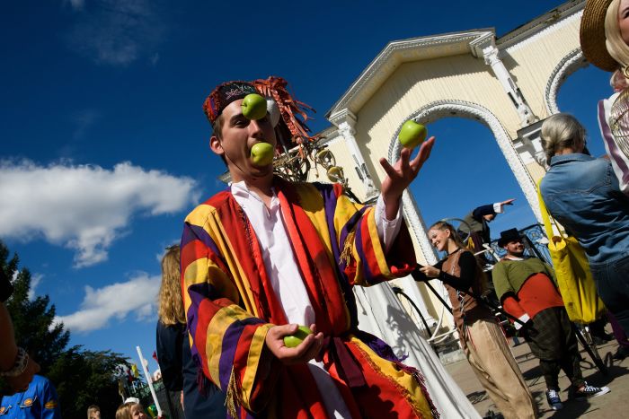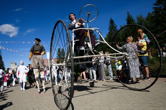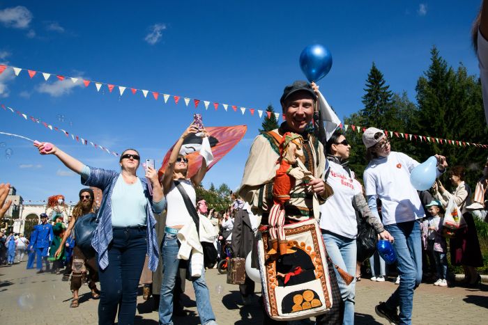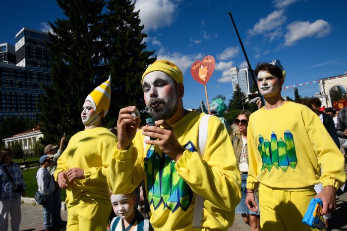 В главном парке Екатеринбурга собрались театры, актёры, ходулисты, мимы и другие творческие коллективы. Дружным строем все они прошли по аллее мимо фонтана к главной сцене, а затем целый день выступали бесплатно перед свердловчанами и гостями города.