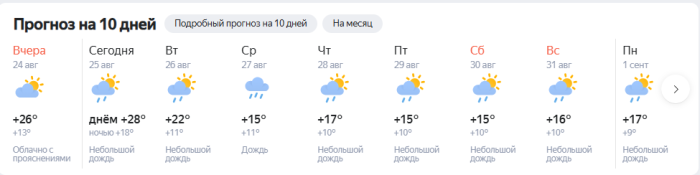 А вот в среду уже туман, днем дождь, местами сильный, гроза. Ветер южной четверти 2-7 м/с, днем местами порывы до 12 м/с. Днём лишь до +20°С.