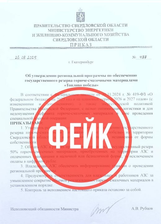 В социальных сетях среди жителей Свердловской области распространилась очередная фейковая информация. Якобы в регионе создаются резервы горюче-смазочных материалов. Это ложь.