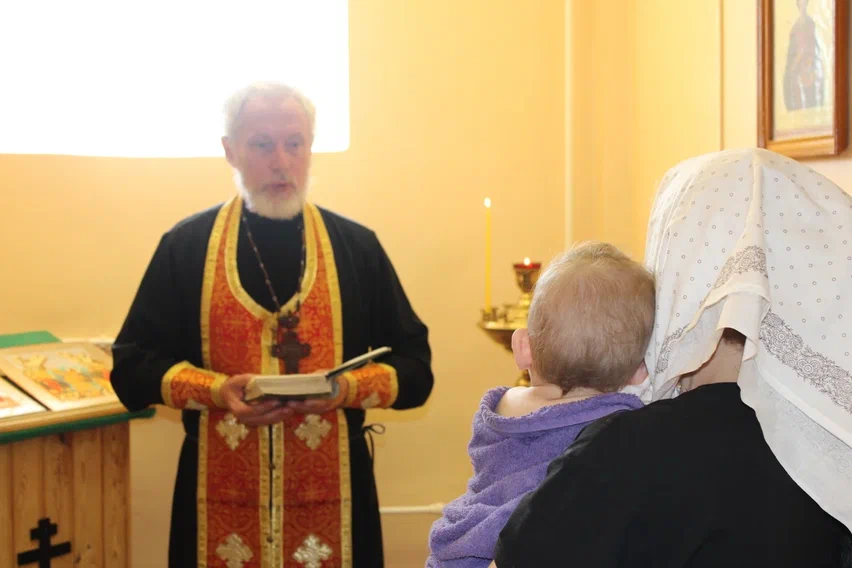 После крещения протоирей Александр поговорил с молодой мамой о принципах христианского воспитания и призвал любить своего ребёнка несмотря на трудности.