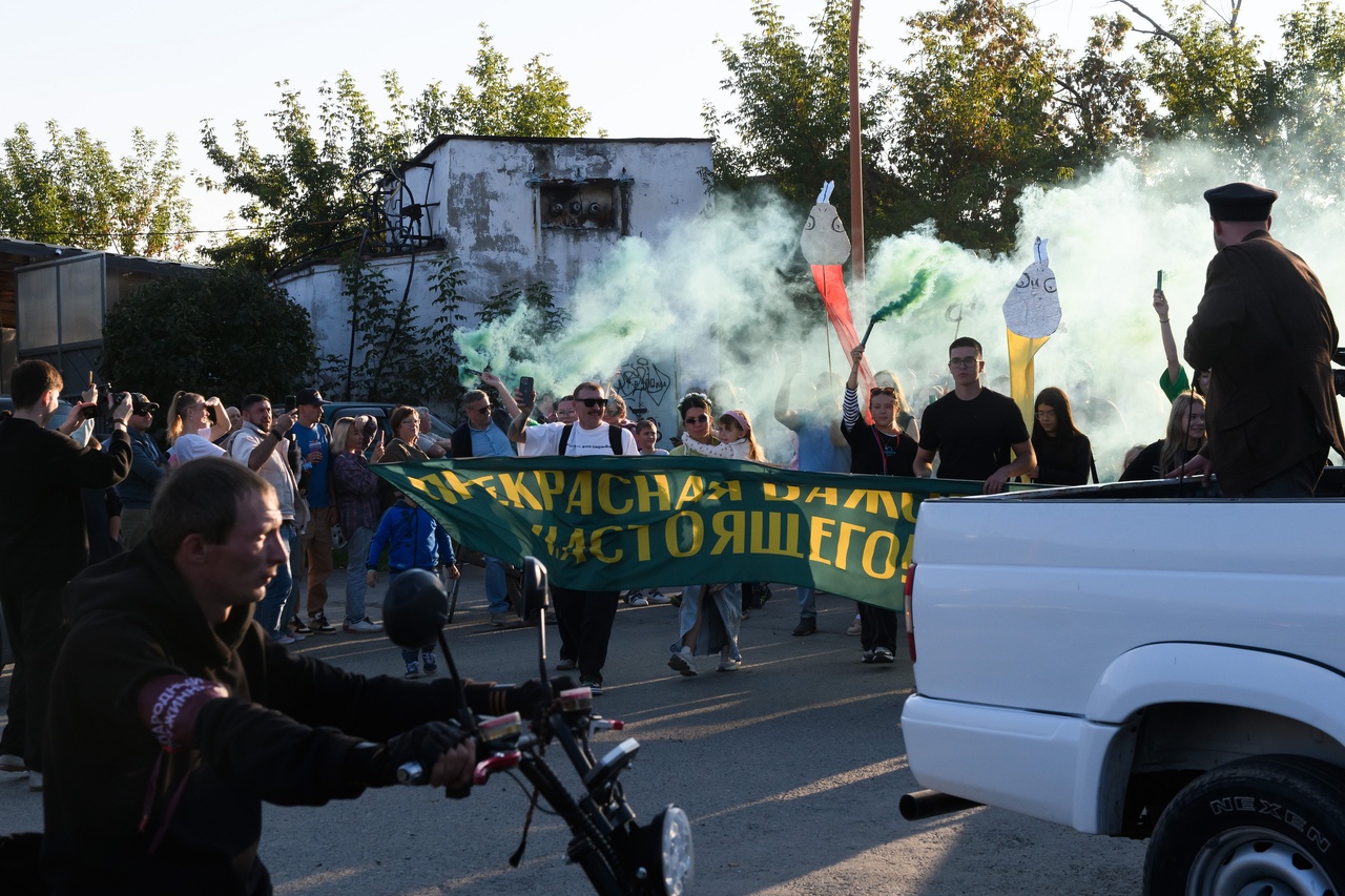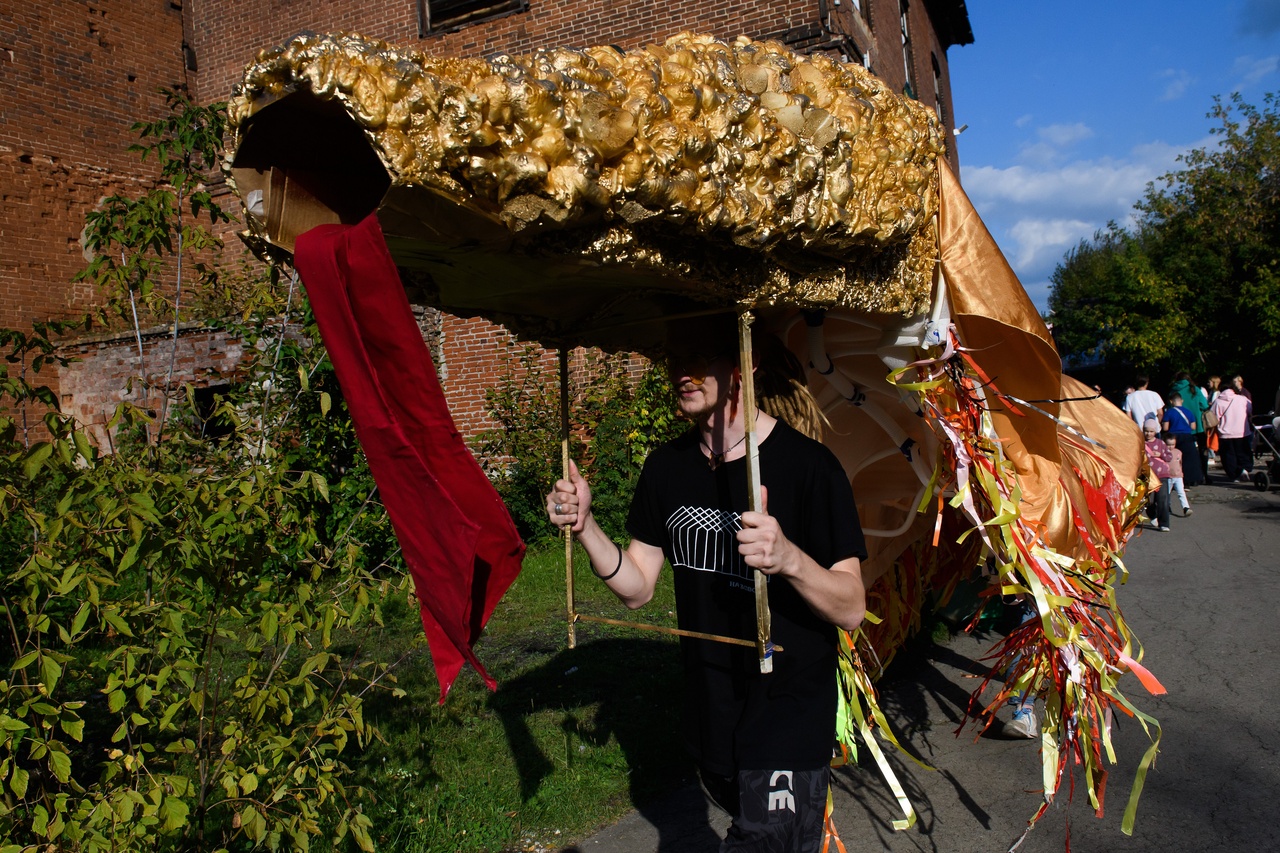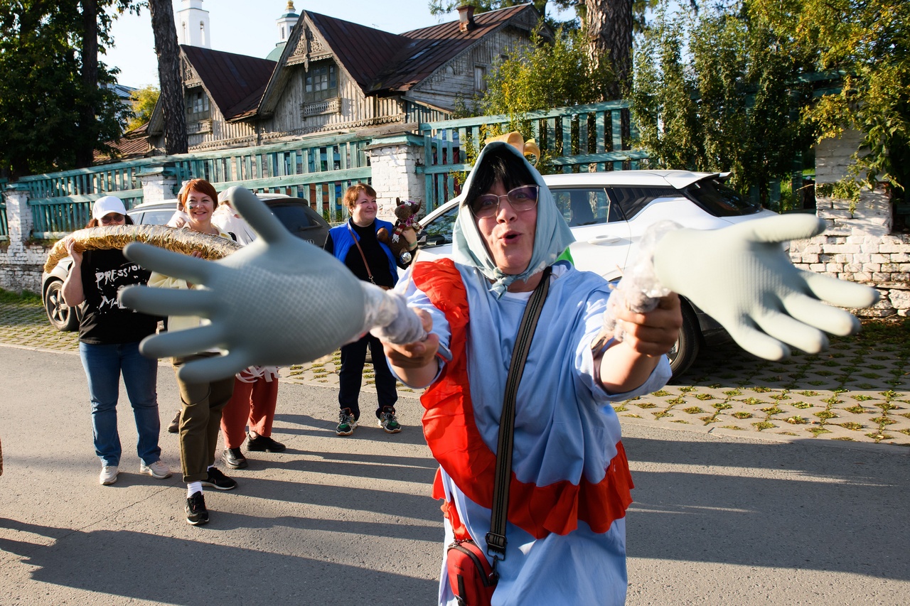 В костюмах уральцы начали путь от Завода Турчаниновых-Соломирских и прошли по родным для писателя улицам, встретили на своем пути Великого Полоза, Хозяйку Медной горы, русалку с бородой, поющую в ванной — она была на крыше знаменитой машины из фильма Ивана Соснина «Легенды наших предков».