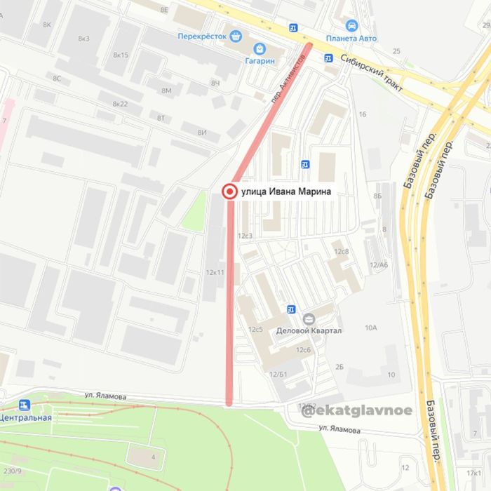 «Улица имени Героя России Ивана Марина появится в Екатеринбурге, — пишет неофициальный телеграм-канал городской администрации „Екатеринбург. Главное“. — Она соединит Сибирский тракт и улицу Яламова. На схеме отметили, где она будет расположена».