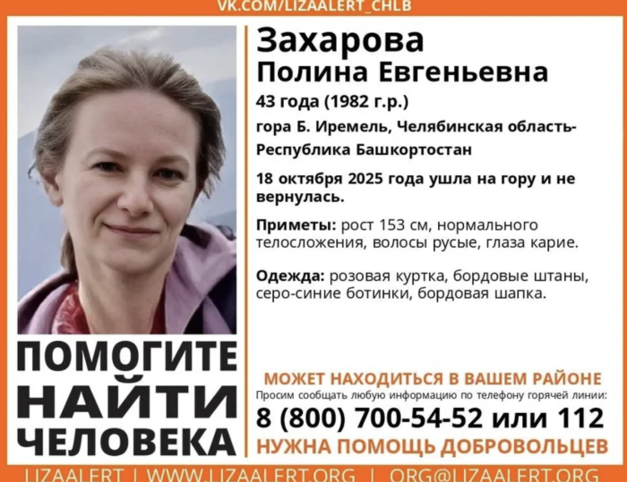 В субботу женщина начала восхождение на гору Большой Иремель вместе с некоммерческой группой любителей туризма. В какой-то момент Полина решила идти отдельно и отделилась от остальных. Захарова — опытная туристка: в конце сентября она участвовала в экспедиции на Приполярный Урал, ранее поднималась на Иремель, Уралтау и другие вершины.