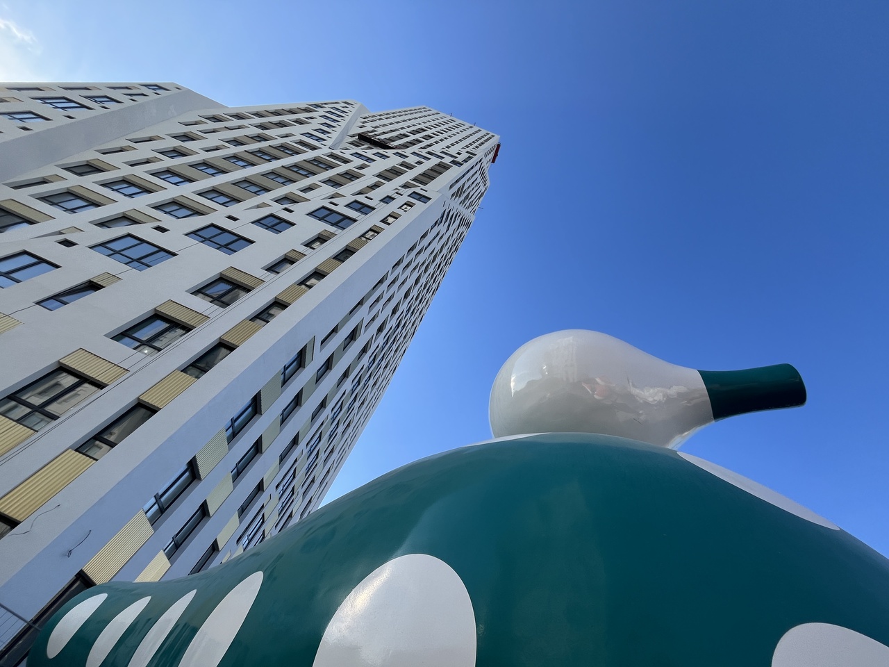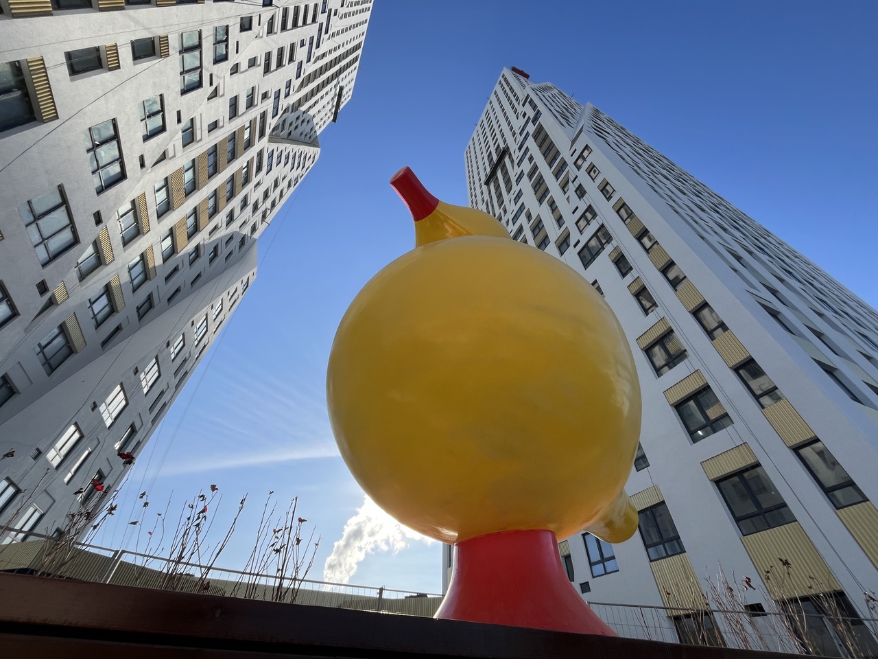 А в 2020г «Этот человечек был сделан исключительно для Екатеринбурга. Объект обязательно должен взаимодействовать с углом 90°, а в архитектуре ТЮЗа как раз много таких углов, поэтому место хорошо подходит для моего объекта», - цитирует пресс-служба фестиваля автора работы».