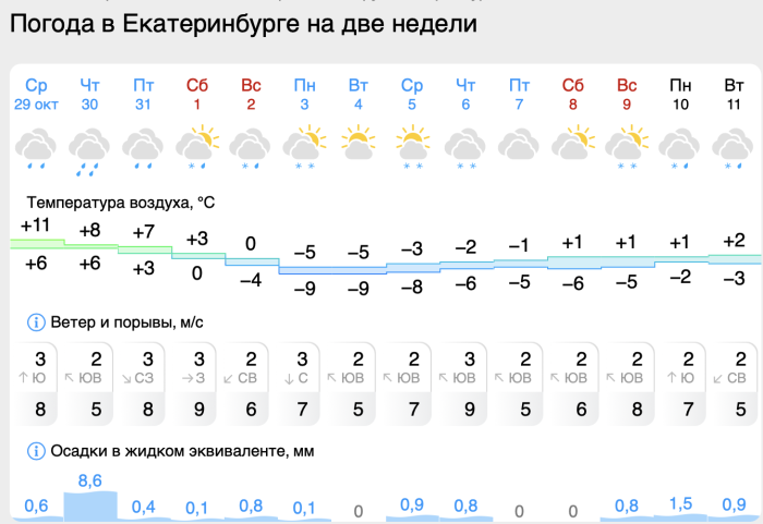 Сегодня же, 29 октября, в Екатеринбурге +10 градусов. Вероятно, это последний теплый день этой осенью на Урале.