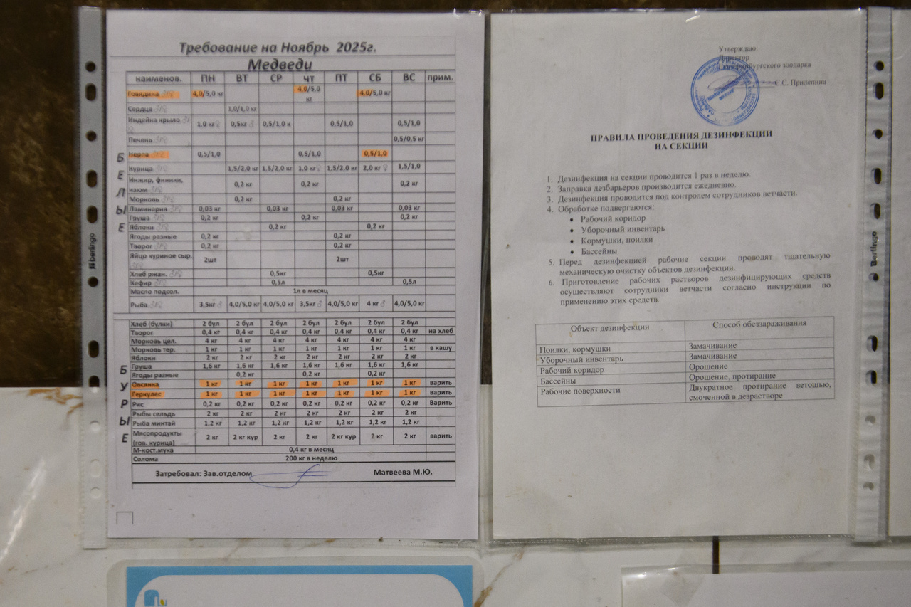 В каждой берлоге есть окошко, в которое ежедневно заглядывают сотрудники, чтобы проверить состояние зверя.