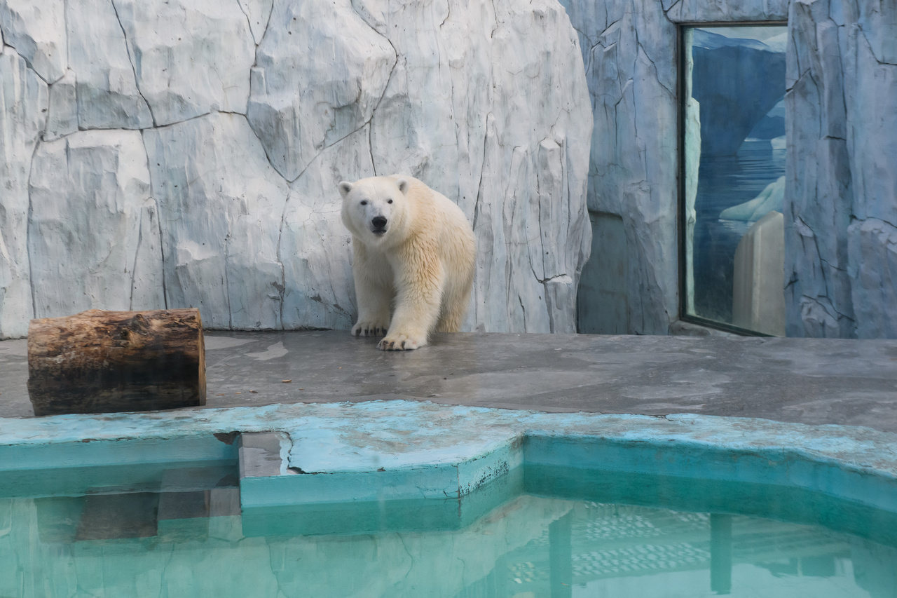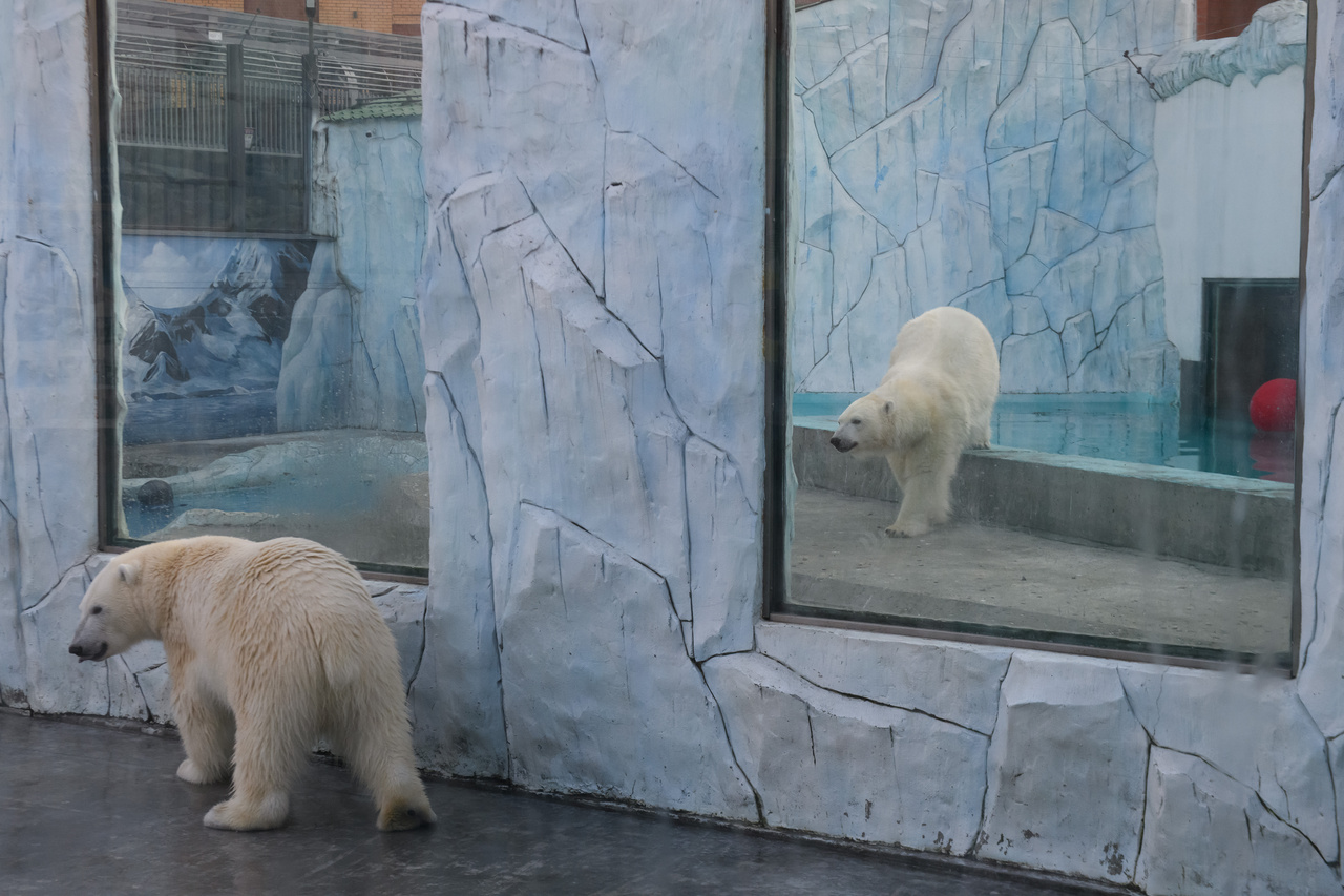 Белые медведи, которых в нашем зоопарке теперь вновь двое (Вилюй и Хатанга), на зимовку не уходят вовсе. Зима для них это время даже более активное, чем лето. Исключение составляют беременные самки. Они устраивают берлоги в снегу и проводят там несколько месяцев, рожая и выкармливая медвежат.