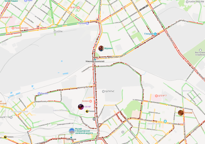 Итак, Екатеринбург встал в пробки, которые Яндекс оценивает в 10 баллов. Вероятно, первый мороз, первый снегопад и первый рабочий день сделали своё дело.