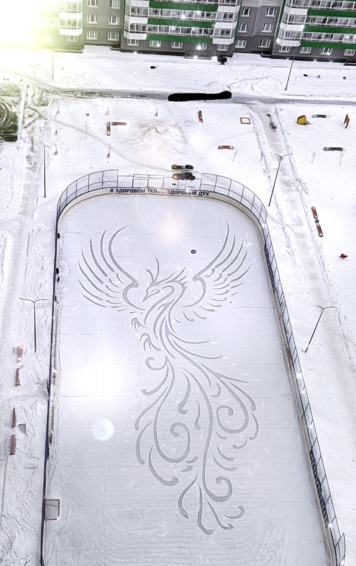 Леонид увлёкся рисунками на хоккейном корте с 2020 года. Жильцы домов часто могут увидеть во дворе огромные изображения Деда Мороза, дельфинов и других животных и сказочных персонажей.