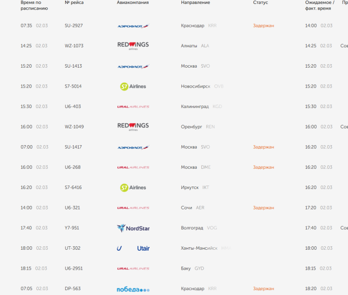В пресс-службе «Уральских авиалиний» сообщили, что также задержали полеты из Сочи, Стамбула и Краснодара в Екатеринбург. Один самолет, который уже летел из Екатеринбурга в Краснодар, посадили во Владикавказе, а борт из Кольцово в Сочи — в Махачкале.