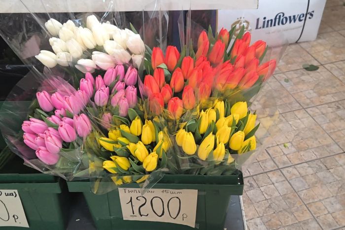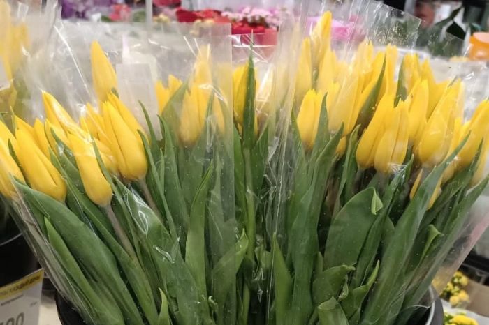 В «Ленте» белые тюльпаны продаются по цене 399 рублей за 5 штук, жёлтые — 869 руб. за 11 штук. В «Окей» букет из 5 штук стоит 419 рублей.