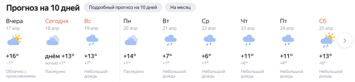 Синоптики сообщают, что 19 апреля возможен снег, местами интенсивный, с образованием заносов на дорогах. В отдельных районах не исключена метель, а также временное формирование снежного покрова и налипание мокрого снега на линии электропередачи.