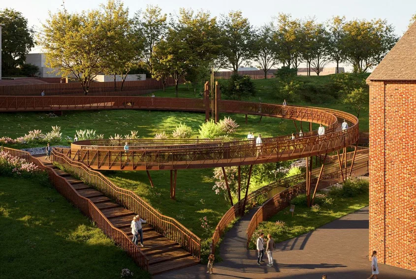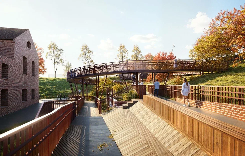 Архитекторы из бюро FISH (Екатеринбург) спроектировали длинный и плавный маршрут с обзорным мостом. С него будут открываться виды на цеха Завода, построенного в 1732 году, и исторический центр города.