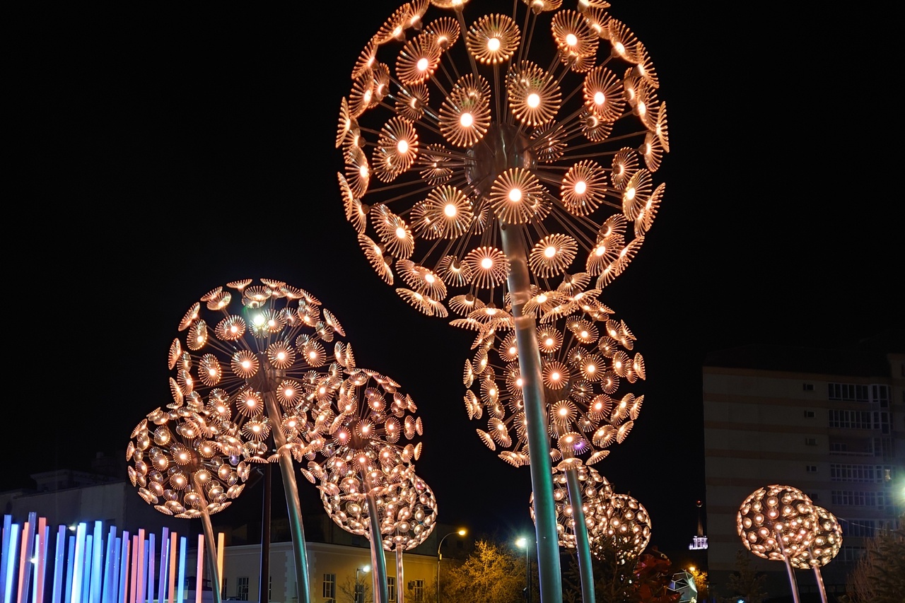 Теперь на участке появились фонари различной формы и гигантские одуванчики, которые светятся в темноте.