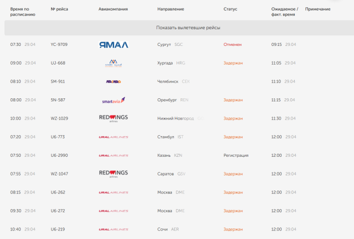 В екатеринбургском аэропорту Кольцово задержаны более 10 рейсов. Два рейса отменены. Аэропорт временно не выпускает и не принимает самолеты.
