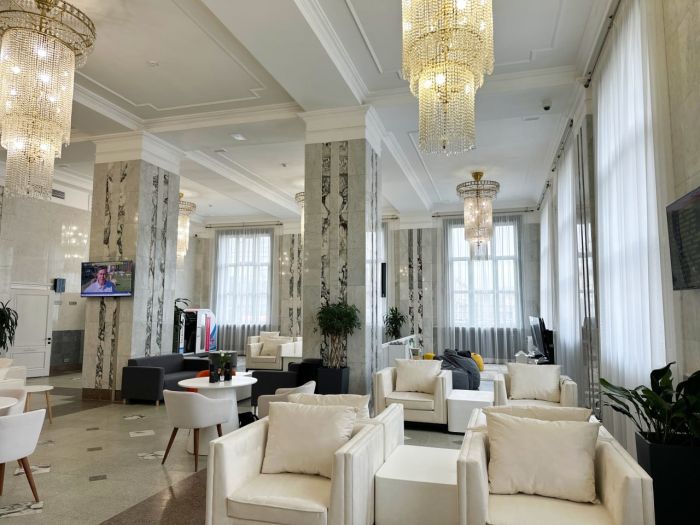 К услугам пассажиров: уютная зона отдыха с ТВ и игровыми приставками, переговорная комната, детский уголок, Wi-Fi и точки для подзарядки гаджетов.
