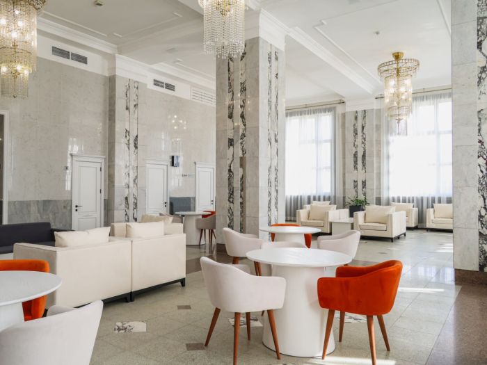 Для гостей предусмотрено питание в формате «шведский стол» с приветственным напитком — в меню классические блюда и угощения национальной кухни, создающие атмосферу региона.
