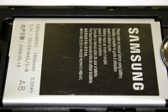 Но даже несмотря на AMOLED, энергию телефон потребляет наравне с небольшим поселком. Samsung постарался решить проблему, установив в аппарат аккумулятор емкостью 1500mA*h. Помогло это не очень сильно, поскольку хватает его все равно не более чем на пару дней. В общем-то, это не удивительно, поскольку использовать телефон хочется постоянно.