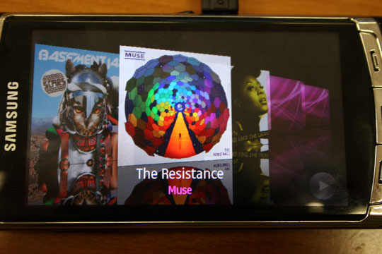 MP3 плеер – ничего особенного. Можно вынести кнопки на рабочий стол, но как уже говорилось, гораздо удобней было бы сделать кнопки управления на handsfree. Функция пролистывания альбомов – лишь не самый удачный клон интерфейса в iPhone.