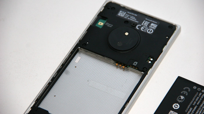 Microsoft постепенно отказывается от цельных корпусов из поликарбоната, переходя на модель со съемной задней крышкой и алюминиевой рамкой, которая уже активно используется «одним корейским производителем». Плюсы у такой конструкции, несомненно, есть. Во-первых, удалось избавиться от слотов карт памяти и SIM-карт на торцах и запрятать их под заднюю панель. Во-вторых, это значительно облегчает доступ к аккумулятору и вообще упрощает сервисное обслуживание.