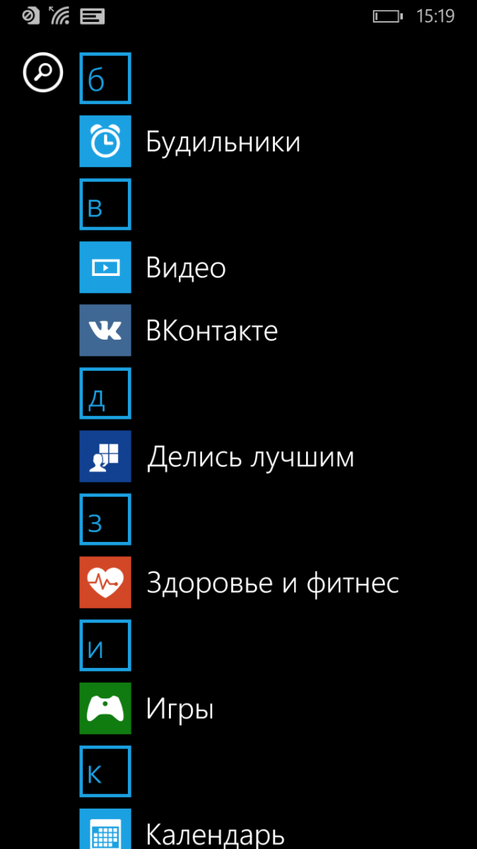 Плиточный интерфейс расширили до полноценного трехрядного, и, несмотря на сравнительно небольшую ширину дисплея, получилось очень органично и функционально.