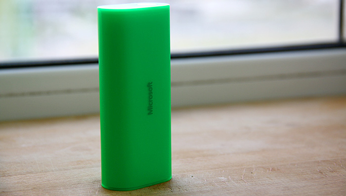 Но если речь идет о более длительном «автономном плавании», то второй участник нашего теста будет как раз кстати — портативное зарядное устройство Microsoft DC-21. Дизайн пауэр-банка выдержан в характерном стиле, и во многом схож с внешним видом беспроводной зарядки Nokia Lumia, так что даже с первого взгляда ясно, что перед нами продукт совместного творчества Nokia и Microsoft. Хотя последнее будет более верно, судя по надписи на корпусе.