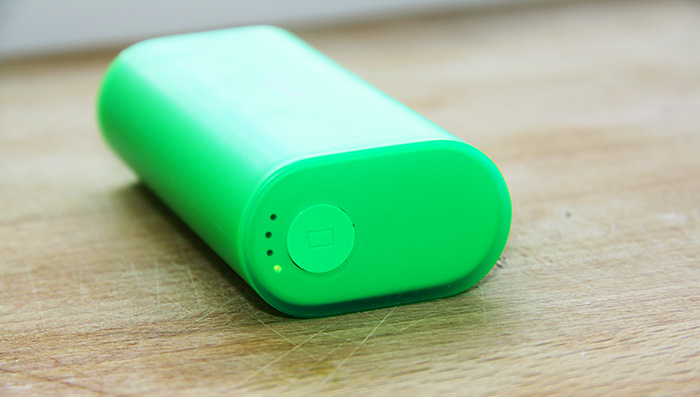 Форма DC-21 — цилиндр с овальным сечением, и, если честно, слишком удачным оно не кажется. Да, в сумке или кармане оно помещается не плохо, но толщина устройства не слишком комфортная. Вес у него составляет 145 граммов, и, учитывая емкость 6000 мАч, это очень неплохо. Над единственной клавишей расположены четыре индикатора, показывающие уровень заряда.