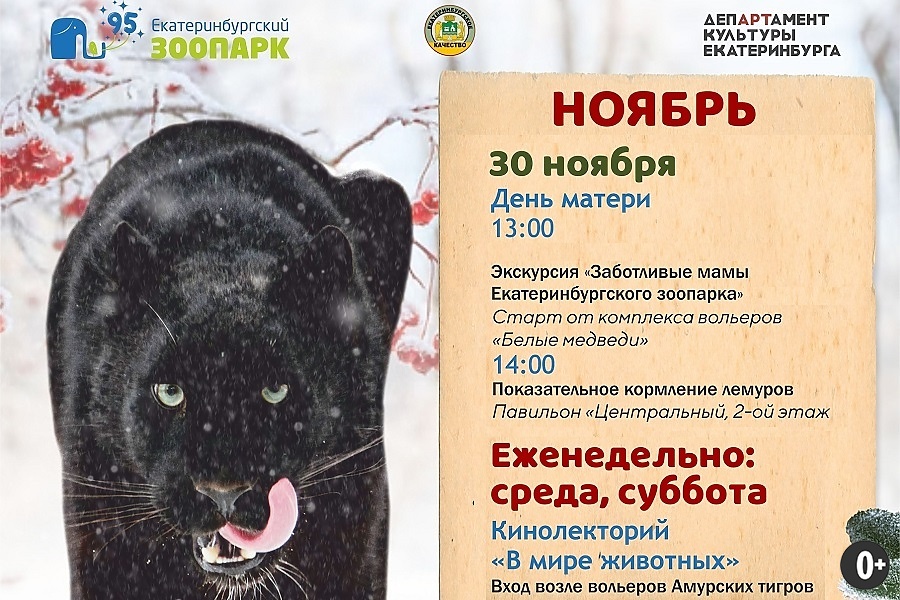 Дню матери посвящается особенная экскурсия «Самые заботливые мамы Екатеринбургского зоопарка». Также вас ждёт показательное кормление лемуров.