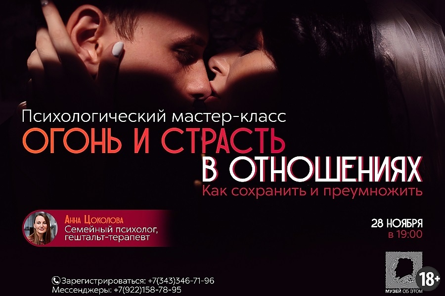 Мастер-класс будет полезен как тем, кто только собирается вступить в отношения, так и супругам с серьезным семейным стажем. Практикующий семейный психолог с 22-летним стажем, автор серии лекций для взрослых и подростков о сексуальных отношениях Анна Цоколова поможет лучше понять, по каким законам живут отношения и страсть.