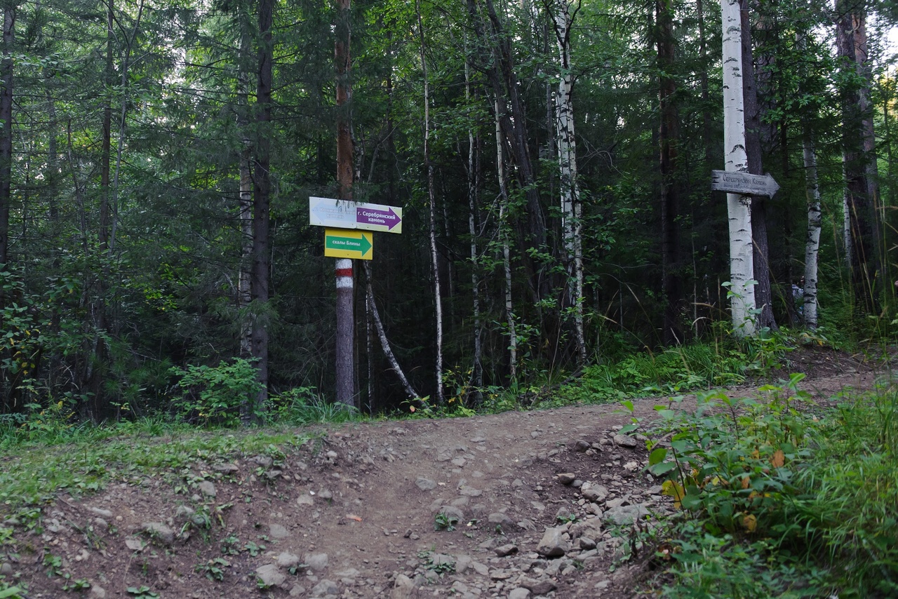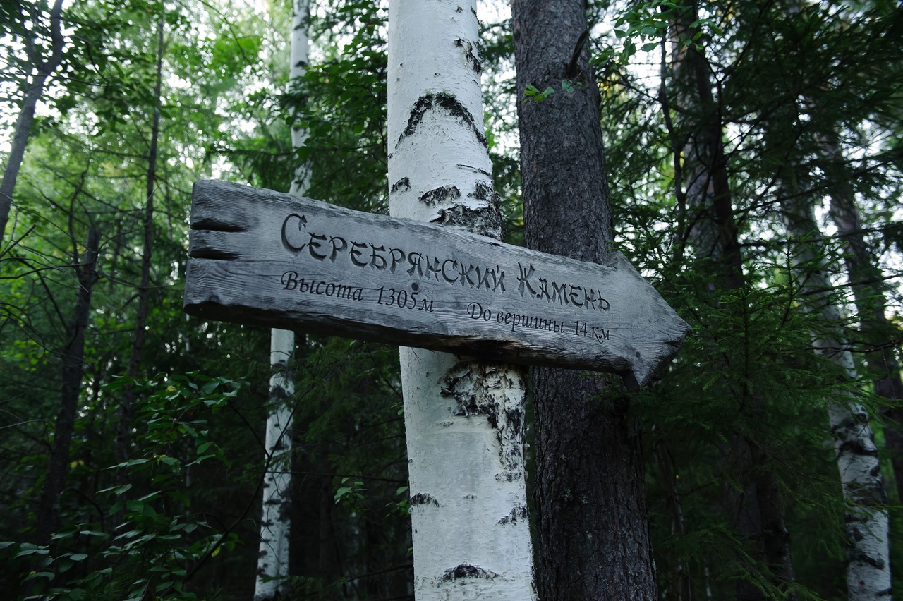 Если верить указателю, то через 14 км вы доберетесь до вершины Серебрянского камня.