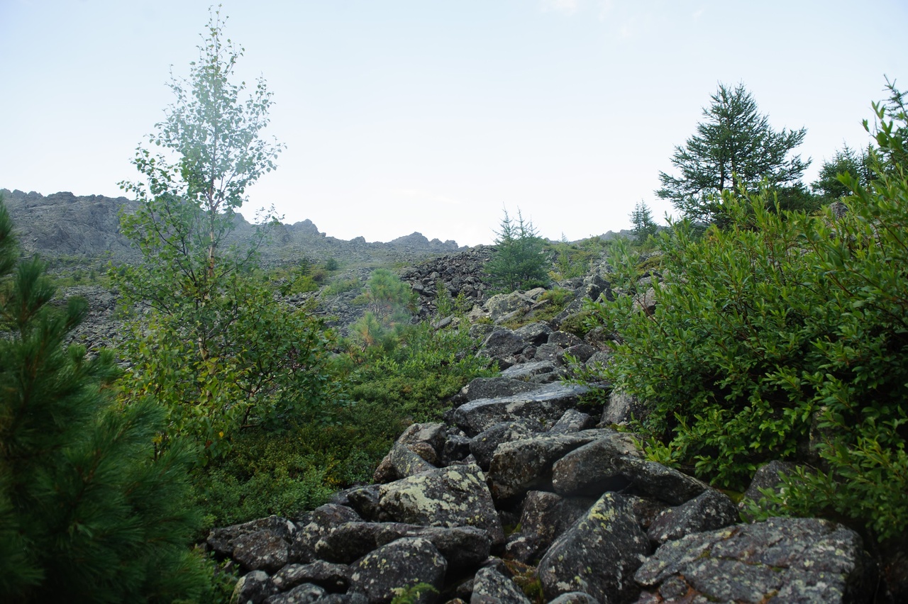 У подножия вершины растет хвойный лес, затем он сменяется тундрой, дальше идут курумники.