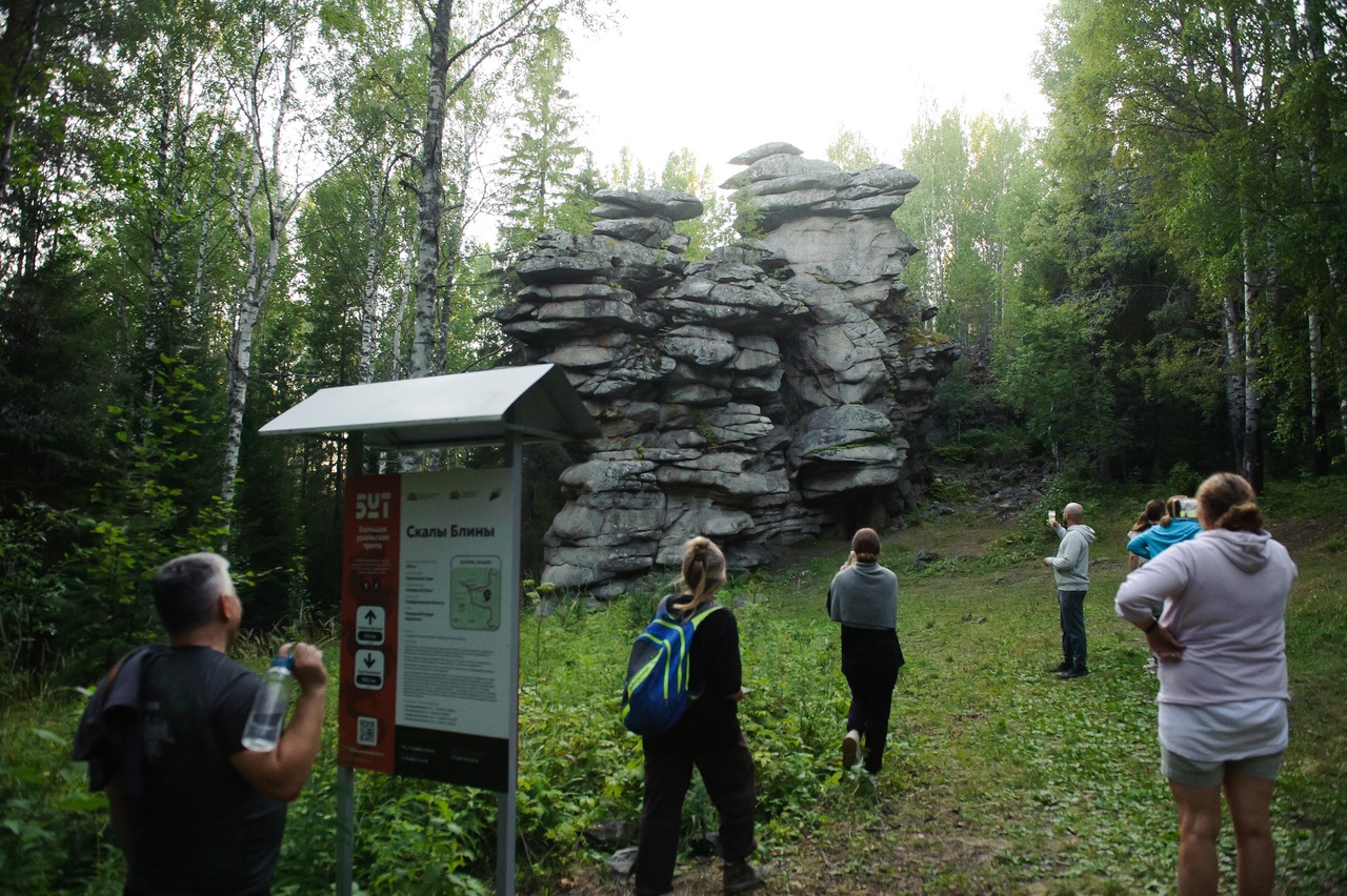 Можно усложнить поход на Серебрянский камень, начав прогулку от базы «Серебрянский камень». Перейдя автомобильную дорогу, вначале вы встретите по дороге скалы «Блины».